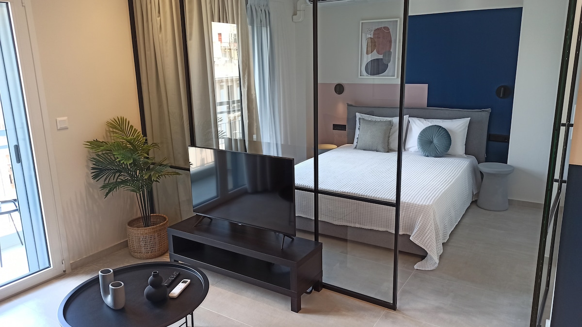 Elegante apartamento boutique, cómodo y de diseño de planta abierta con un ambiente de lujo y un ambiente súper positivo. ¡Siéntete bien, siéntete elegante y seguro! ¡A 730 metros del metro y junto a Patision Av con muchos autobuses y líneas de tranvía las 24 horas del día, los 7 días de la semana! ¡La zona cuenta con una vida vívida y tiendas cercanas! ¡El apartamento está en el primer piso y hay un ascensor disponible! ¡La entrada sin llave es posible! Cama tamaño queen (gran calidad del colchón). 2 balcones pequeños (hacia el jardín interior y a la calle). ¡Internet rápido de 300 mbps con router Wifi 6!
