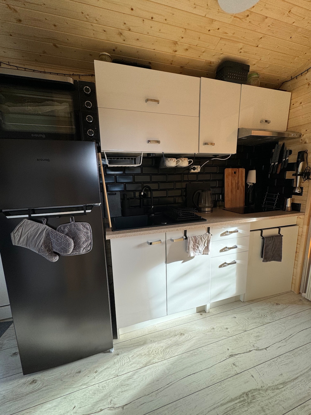 La cabaña está situada en las afueras del pueblo en una bonita ubicación en medio de la naturaleza. Es independiente, con una chimenea adyacente donde se puede hacer una barbacoa, y tiene su propia entrada. Es posible aparcar delante de los garajes de la casa familiar detrás de la valla, el huésped alojado tiene su propio mando a distancia para la puerta y luego caminar 100 m por la acera hasta la cabaña.