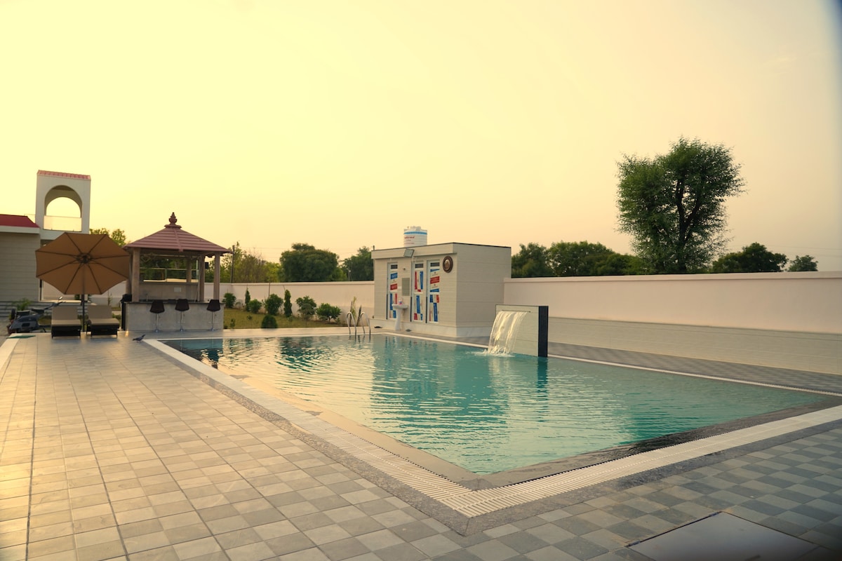 🌿 Welcome to Wood Heaven Farms — Jaipur’s Premium Getaway Escape the city and step into your own private farmhouse retreat. Spread across lush green lawns with a serene outdoor setting, Wood Heaven Farms is designed for groups, families, corporate teams, and intimate celebrations looking for a peaceful, premium stay close to Jaipur. With a private swimming pool, 4 open gardens, spacious indoor areas, and complete privacy, this is the ideal space to relax, reconnect, and celebrate together.
