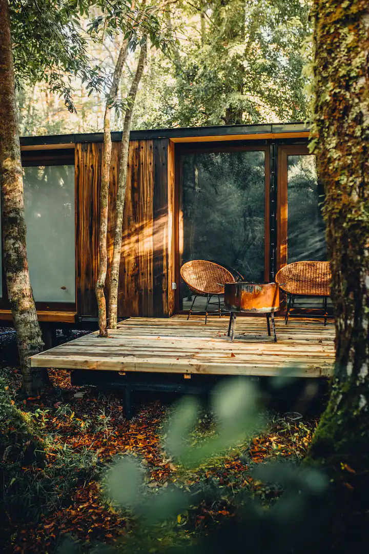 Un lugar único y mágico donde podrás disfrutar desde un cómodo espacio de las maravillas de la naturaleza. Sumérgete en medio de un bosque sureño, y endémico de nuestro país Chile; característico de zonas con gran cantidad de lagos, ríos, cascadas , volcanes y más, rodeado de diversas especies de flora, fauna y funga nativa. Además estamos a pasos de Termas Geométricas y Termas el Rincón imperdibles de este lugar. Ven y Disfruta de la experiencia Refugios de Bosque. "Conexión Natural"