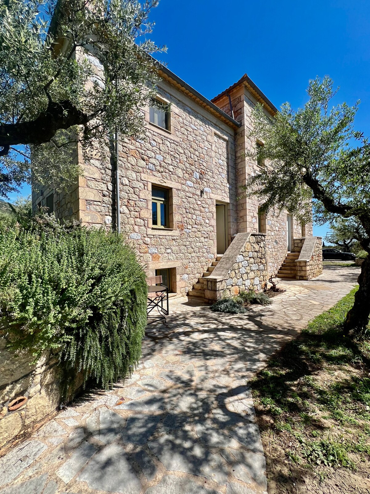 The house is built in the traditional settlement of Proastio (or Prasteio for the locals) in an olive grove. It is located 6km (less than 10 minutes by car) from Kardamili and 9km (about 15 minutes drive) from Stoupa. In the area there are many beaches (organized and not) as well as cafes, taverns and restaurants for all tastes and requirements. The nearest beach is Kalamitsi (about 4km) and is ideal for children.