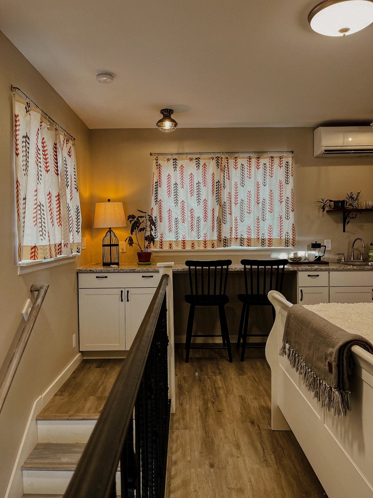¡Te damos la bienvenida al estudio de Evie! Este encantador espacio de estudio es perfecto para uno o dos viajeros. Disfruta de una vida pequeña con todas tus comodidades esenciales; nuestro pequeño pero poderoso estudio cuenta con una cama tamaño queen, baño privado, TV inteligente de 42 pulgadas, un pequeño comedor con nevera vintage, microondas y una Keurig para tu taza de café de la mañana.