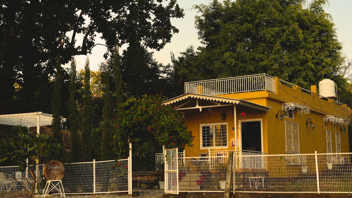 ¿Tu alma anhela la naturaleza? Bienvenido a Devnishtha Cottage, una acogedora casa junto al bosque. Esta encantadora casa de campo te lleva de vuelta a tiempos más sencillos, ofreciéndote una experiencia tranquila y atemporal donde puedes relajarte de verdad. Situada a 2-5 kilómetros de excelentes lugares de comida, tiendas de comestibles y mucho más, tendrás todo lo que necesitas cerca. A pesar de estar cerca de estas comodidades, la casa de campo ofrece un entorno tranquilo y pacífico.