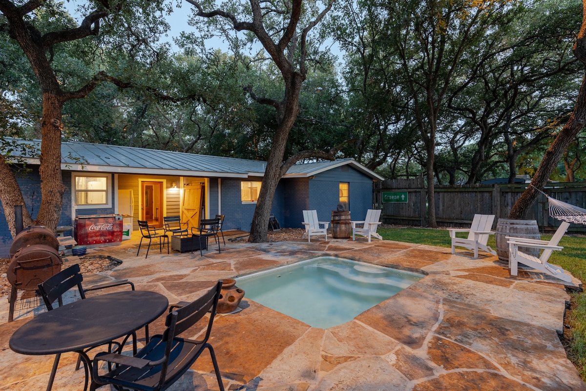 ¡Bienvenido a Fluss Haus Guadalupe, ubicado en 1 acre en el hermoso río Guadalupe en Texas Hill Country! Disfruta de tu propio acceso privado al río justo en nuestro patio trasero sombreado, o viaja a solo 5 minutos del Horseshoe o Canyon Lake, a 20 minutos del histórico Gruene o a 25 minutos de Schlitterbahn en New Braunfels. Esta propiedad ofrece una gran experiencia de casa de río (Fluss Haus) para aquellos que buscan relajarse y disfrutar del tiempo con amigos y familiares en Texas Hill Country. ¡Se admiten mascotas! (Límite de 2 mascotas, pequeña tarifa)