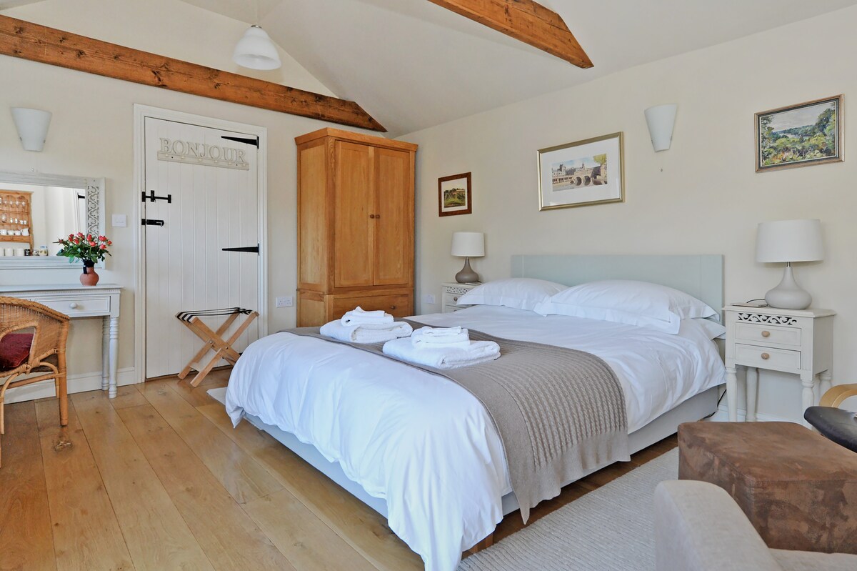 El anexo del jardín de Coopers Farmhouse. Esta unidad independiente está arriba, encima de nuestro garaje, con un balcón con vistas a hermosos campos y jardín. Entras en el salón con una minicocina, TV y zona de estar y sofá cama (tamaño king). A través de un arco (sin puerta) y en el dormitorio, las camas individuales se pueden unir y convertirse en una hermosa cama doble grande si es necesario. Por último, un baño con ducha. Se dejará un pequeño desayuno continental para tu primera mañana de estancia.
