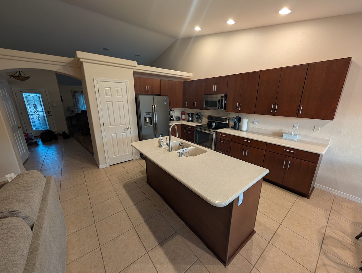 Casa de 3 dormitorios de 1300 pies cuadrados absolutamente preciosa. La encantadora entrada te da la bienvenida a la elegante sala de estar abierta. En el espacioso comedor y cocina con hermosos mostradores de granito. Un acogedor dormitorio principal con su propio baño que incluye lavabos dobles. El garaje tiene un impresionante bar tiki y un gimnasio en casa. El patio trasero ajardinado incluye un césped exuberante y un pequeño parque para perros para tu mascota.