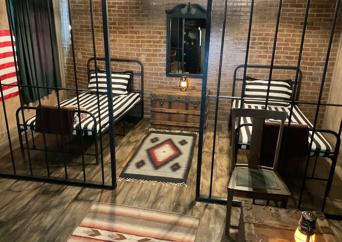 ✅No somos una propiedad con check-in autónomo. ✅Para reservar, necesitamos un preaviso de 1 día. ✅Los baños y la ducha están junto a la cárcel. ✅NO SE ADMITEN MASCOTAS, PROHIBIDO FUMAR ¡Venga a hospedarse en la antigua cárcel en Azblue Ranch Retreat! ¡Le encantará esta habitación privada única con estilo de litera y temática! Es privado, está ubicado en un lugar apartado en la calle principal y ofrece 2 literas, televisión, Internet, microondas, refrigerador, una cafetera Keurig y una zona de estar. Está ubicado en nuestro parque temático, un lugar sereno y tranquilo. ¡Vengan, les va a encantar este lugar!🤠