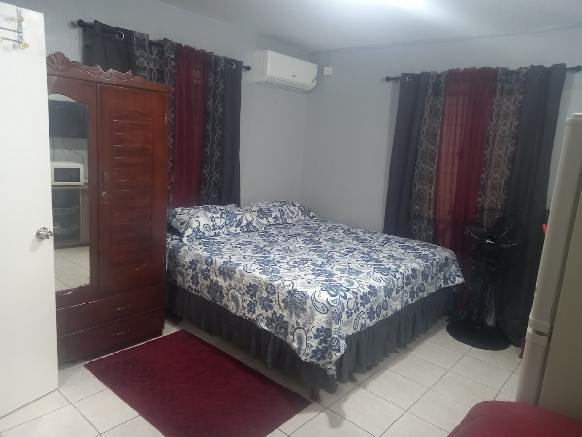 Este estudio tiene lo esencial para la vida moderna: wifi y aire acondicionado. Con una ubicación céntrica en Kingston 6, es fácilmente accesible en transporte público, a dos minutos a pie del Museo Bob Marley, a pocos minutos de la Embajada de los Estados Unidos, el centro Sovereign, entretenimiento y atracciones.