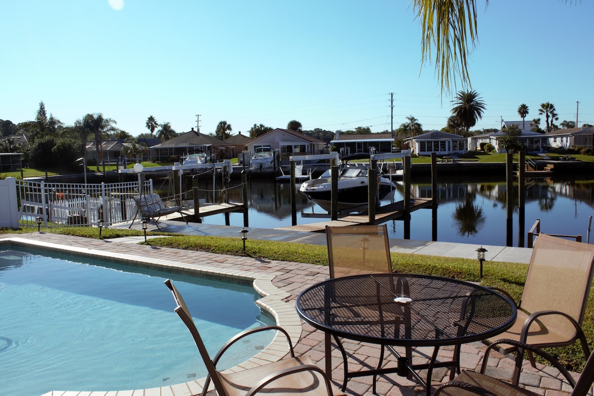 Relájate con toda la familia en este lugar tranquilo para hospedarte. La casa tiene una piscina nueva con luces LED y calentador de agua. Puedes ver delfines y manatíes en el canal trasero de la casa. Casa recién remodelada con acceso directo al golfo, sin puente. Trae tu barco y disfruta de la pesca de agua salada con un muelle privado. Ubicación perfecta, cerca de playas, parques, restaurantes y tiendas.