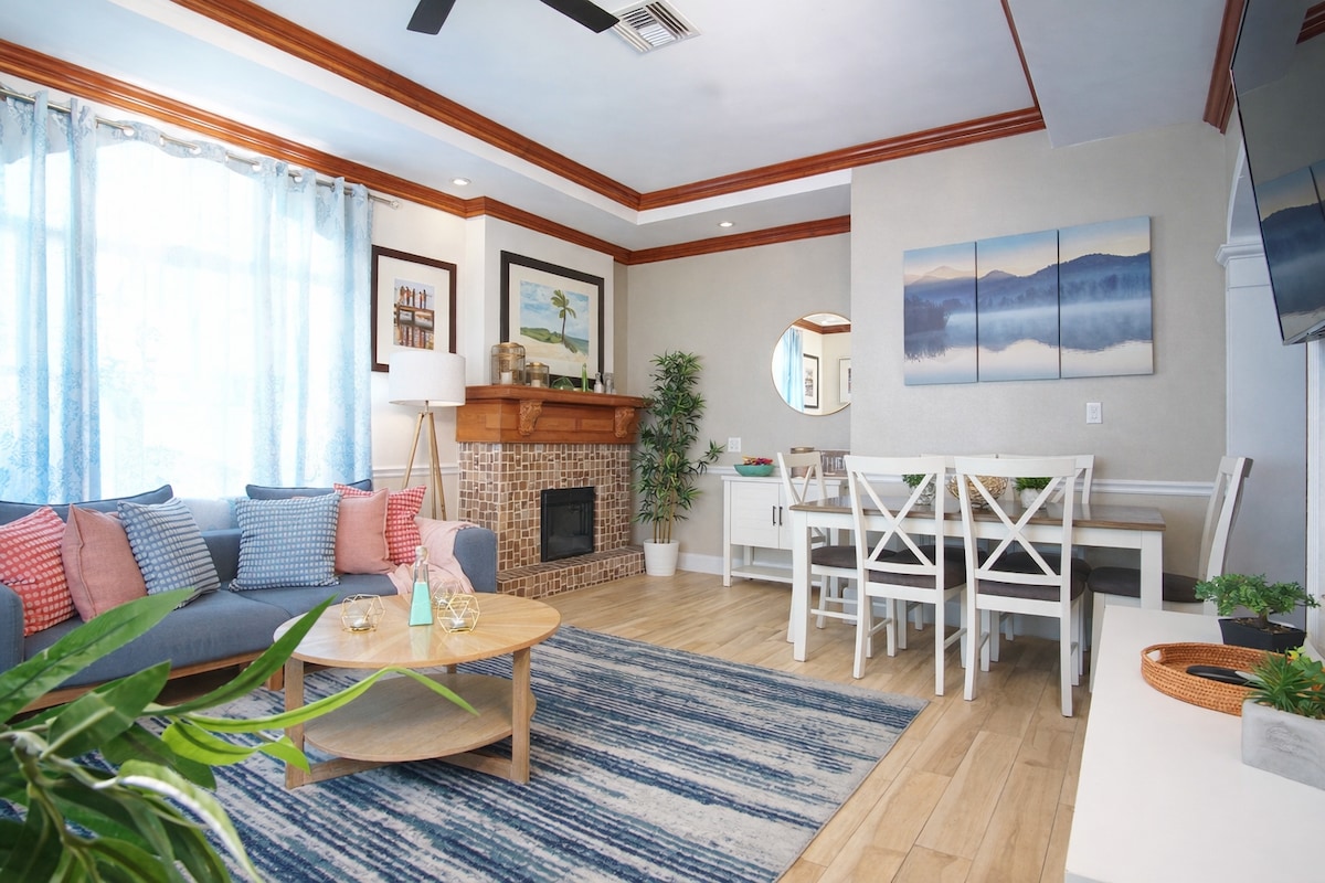 Relájate en nuestro refugio Pink Coral de 2 dormitorios a solo 7 minutos del aeropuerto y a 4 minutos de la playa, restaurantes y tiendas de comestibles. Relájate en la espaciosa sala de estar con televisor inteligente de 55 pulgadas, wifi rápido y aire acondicionado central. Este 2Br 1 1/2 Ba tiene una cama tamaño king en el dormitorio principal y una cama tamaño queen en el dormitorio secundario. Piscina compartida en el patio trasero con cascada, parrilla y cornhole Cocina totalmente equipada. Comunidad tranquila y segura Distancias: LPIA 7 min • Nirvana Beach 5 min • Baha Mar 10 min. ¡Reserva ahora y comienza tu estadía en la isla!