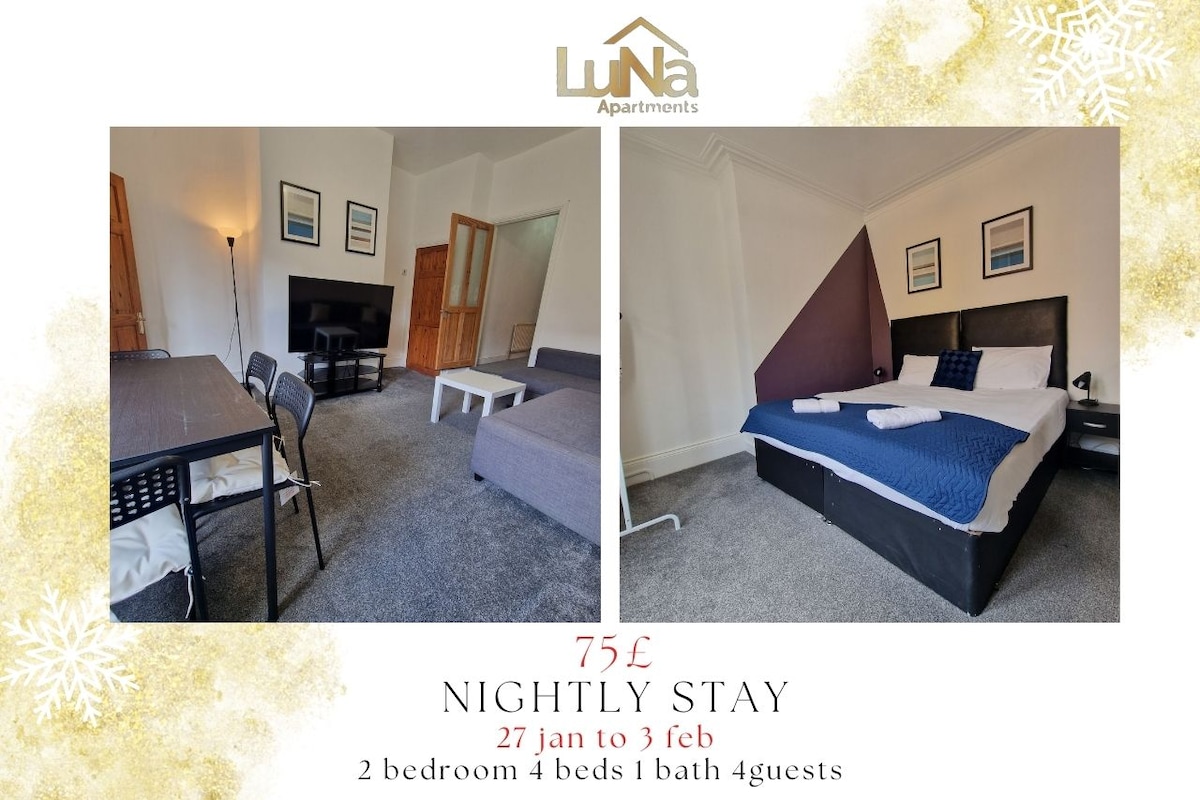 Quirky 2bed apt, up to 6 guests/nr Jesmond/centre