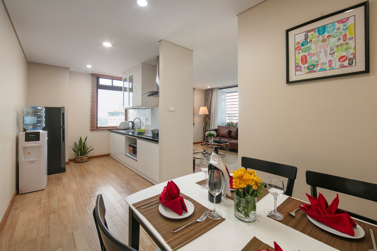 Además de nuestra cadena de apartamentos en Hanói, Baohung Apartments presenta con orgullo 5 nuevos apartamentos. Estos son los apartamentos más lujosos con 2 dormitorios, totalmente amueblados, hermoso balcón y un amplio baño con una gran bañera, agua filtrada, aire acondicionado/calefacción, una cocina inteligente y colchones de espuma viscoelástica que garantizan un buen sueño nocturno. Los apartamentos están recién construidos y equipados con sistema de seguridad las 24 horas, los 7 días de la semana (en áreas públicas). ----- ¡Ven con nosotros y disfruta de tus vacaciones! ------