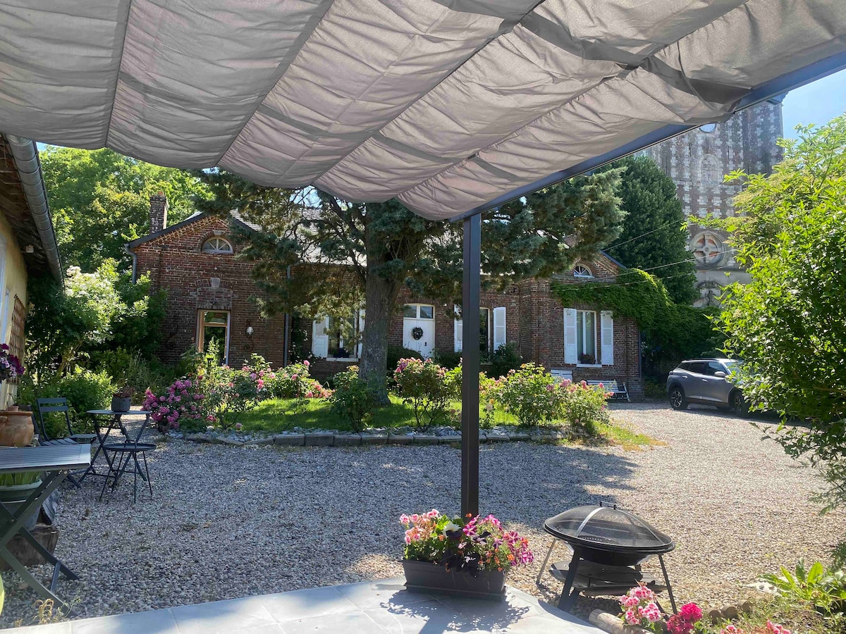 Encantadora casa de una sola planta con chimenea de leña orientada al sur, jardín y terraza privados y cerrados al oeste. Este lindo lugar, ubicado en un edificio anexo de la casa de los propietarios, se encuentra en el borde de una calle tranquila con un gran parque con árboles, naturaleza y prados como vecinos. Este lugar, no muy lejos de la Baie de Somme, el mar y el bosque, será ideal para un fin de semana, unas vacaciones o un descanso de teletrabajo para parejas o familias.