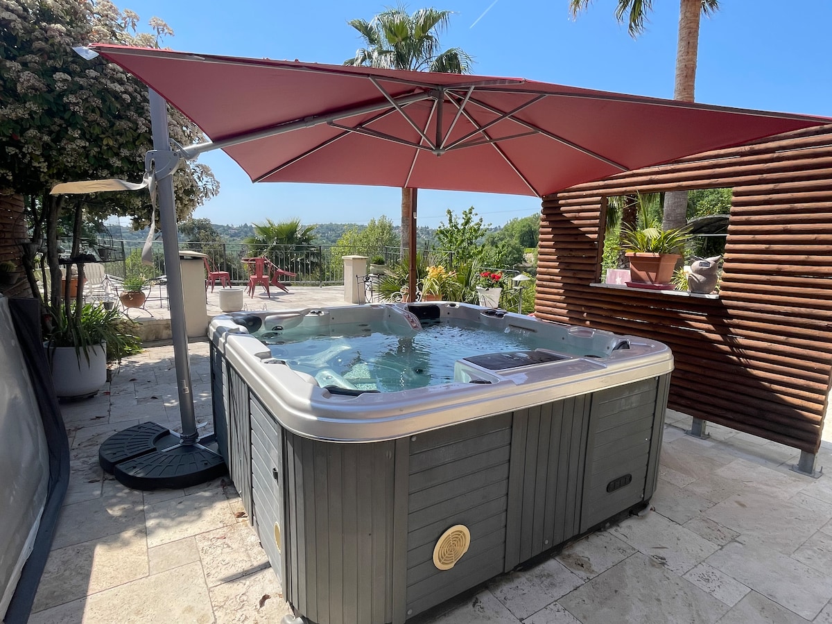 Grand appartement 80 m2 avec une chambre dans une aile indépendante de notre villla. grand jardin feerique . Aucun vis à vis. 2 piscines dont un jacuzzi , et bain suedois chauffe sur reservation. . Cadre magique. vue mer/ montagne Table extérieure terrasse couverte Terrasse piscine . Acces barbecue . cuisine : four, plaque induction lave vaisselle frigidaire Smeg. Sddouche avec toilette et seche serviette confort. poêle à bois jotul. Rideaux black out . grand ecran TV DVD . parking