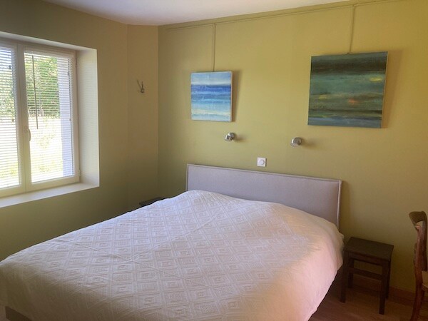 Amplia habitación bajo marco en nuestra casa familiar, que es un antiguo molino en el corazón de una naturaleza verde junto al río. Las instalaciones sanitarias y la cocina son comunes. Encontrarás en nosotros una casa de estar con niños y huéspedes listos para intercambiar o para ser más discretos. Hay varios gatos en la casa,prohibido en el piso de la habitación, y caballos en el campo. Es posible desayunar bajo petición por un precio de 5 € por persona. El precio de la estancia de una noche es diferente en función del número de personas.