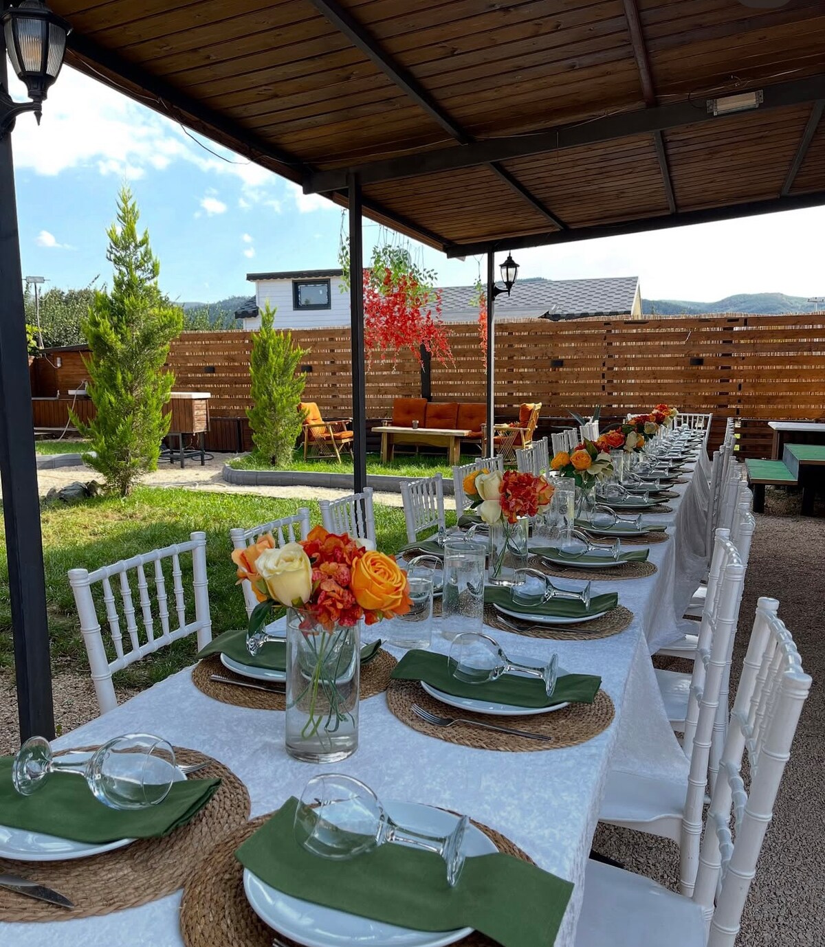 Doğum günü after party bekarlığa veda evlenme teklifi iş yemekleri toplantıları söz nişan gibi özel kutlamalar için bahçe alanımız geniştir.Mangal ateş çukuru mevcuttur.Evin yakınlarında restoran market kasap her türlü ihtiyaç için hepsi mevcuttur.Yemek siparişi verebileceğiniz yerler vardır.