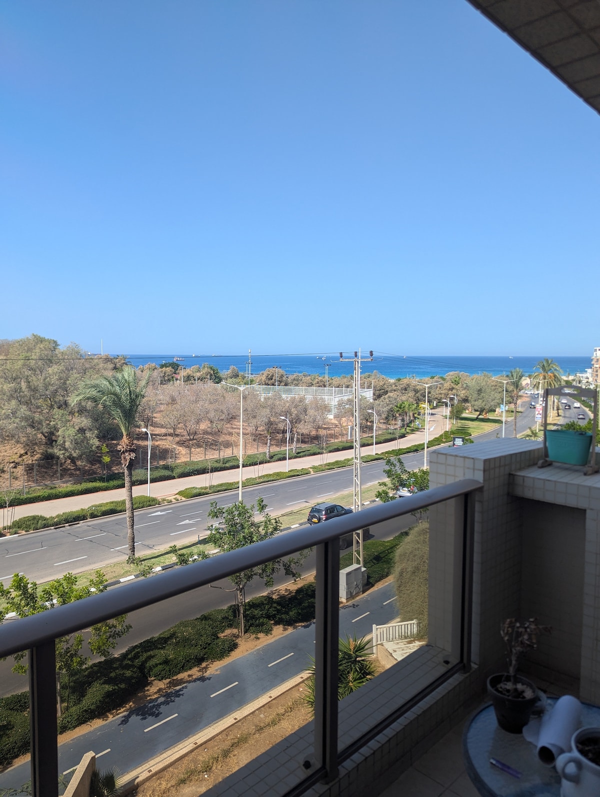 à 2 min pied de la plage, terrasse, vue sur la mer. Cuisine, salle de bain baignoire, 2 chambres dont une blindé (bunker) Appartement recommandé pour 3 adultes ou 2 adutes 2 enfants Possible 4 adultes avec canapé convertible Tel Aviv 43 km Ashkelon à 23 km L'aéroport à 47 km Frais Électricité à prévoir pendant les périodes chaudes (Vous avez 10 shekel par jour d’inclus.) pour éviter les abus Caution peu être demandé