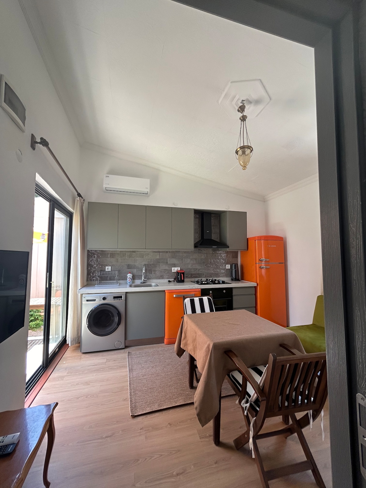 ¡Departamento con un aspecto rústico moderno! ¡2 dormitorios grandes te darán el descanso definitivo para tus vacaciones!Disfruta de nuestras playas limpias que están en cada rincón de la isla... su distancia está a solo 5 minutos en transporte y un poco más si quieres ver la puesta de sol. ¿No tienes que llevarte? No importa... la estación de autobuses está a 2 minutos a pie Hay estacionamiento gratuito EN LA zona El aeropuerto está a solo 15 minutos de la casa