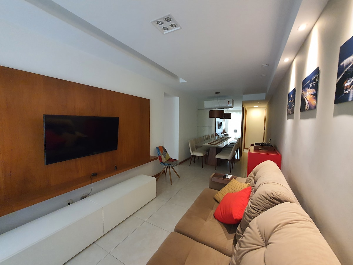 Excelente apartamento, amplio y muy ventilado. Montado y con una decoración sofisticada. Condominio con PISCINA, SAUNA y GIMNASIO. Comercios cercanos. Habitación doble con cama QUEEN SIZE, AIRE, TV, suite y vestidor. Oficina con armarios, AIRE y SOFÁ CAMA doble y suite. Sala de COMEDOR y SALA con TV, SOFÁ CAMA doble/chaise y aire acondicionado. Lavabo, balcón, cocina completa y área de servicio y plaza de garaje. Lavadora, plancha eléctrica. WiFi (Vivo Fibra 300 megas) y Netflix.