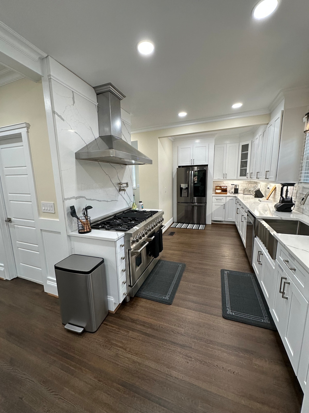 Bienvenido a este moderno refugio de mediados de siglo, perfecto para huéspedes exigentes que buscan comodidad y lujo. Esta casa de concepto abierto de 3 dormitorios y 2 baños cuenta con una cocina gourmet totalmente equipada con isla de cuarzo, una acogedora sala de estar con chimenea LED «Fuego y hielo» y colchones orgánicos con sábanas finas. Relájate en la espaciosa terraza con luces de cuerda y exuberantes vistas al jardín o disfruta de la hamaca y la parrilla de gas compartida. Ubicado en una calle tranquila, este refugio es céntrico para el aeropuerto, South End, SouthPark y Uptown.
