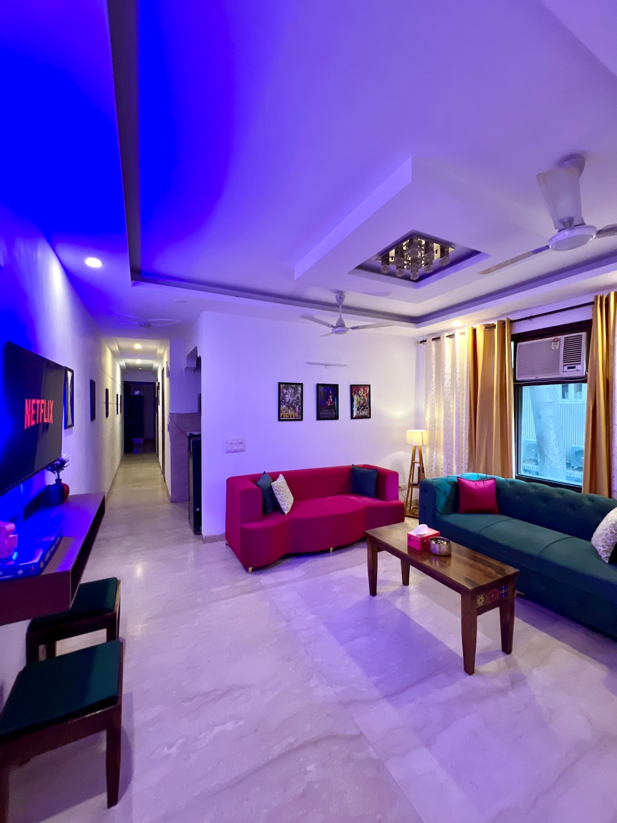 ¡Te damos la bienvenida a nuestro espacioso apartamento de 2 dormitorios, perfecto para familias o grupos pequeños! Cada dormitorio está cuidadosamente diseñado para la comodidad, con camas acogedoras y amplio espacio de almacenamiento. La sala de estar de planta abierta cuenta con un cómodo salón y una cocina totalmente equipada, ideal para relajarse y cocinar juntos. Disfruta de comodidades modernas, wifi de alta velocidad y un encantador comedor. Ubicado en un barrio vibrante, estás a pocos pasos de atracciones locales, tiendas, restaurantes y a 9 minutos del centro comercial Gaur City Mall.