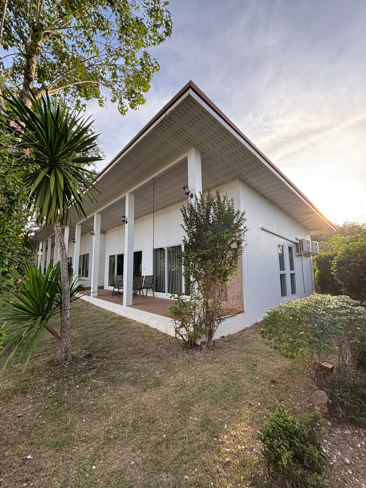 Retiro 🌴 paradisíaco con piscina privada Escápate a nuestra lujosa villa de 2 dormitorios y 2 baños ubicada en el corazón de la serenidad, a solo 10 minutos de la playa de Klongmoung y del impresionante parque nacional Khao Ngorn Nark (montaña de la cresta del dragón). Exuberante jardín y comedor al aire libre. Aparcamiento privado. Tienda práctica y varios restaurantes. Disfruta de la tranquilidad con tu propio oasis privado, date un chapuzón en la piscina mientras disfrutas del jacuzzi. Adopta la cultura local.