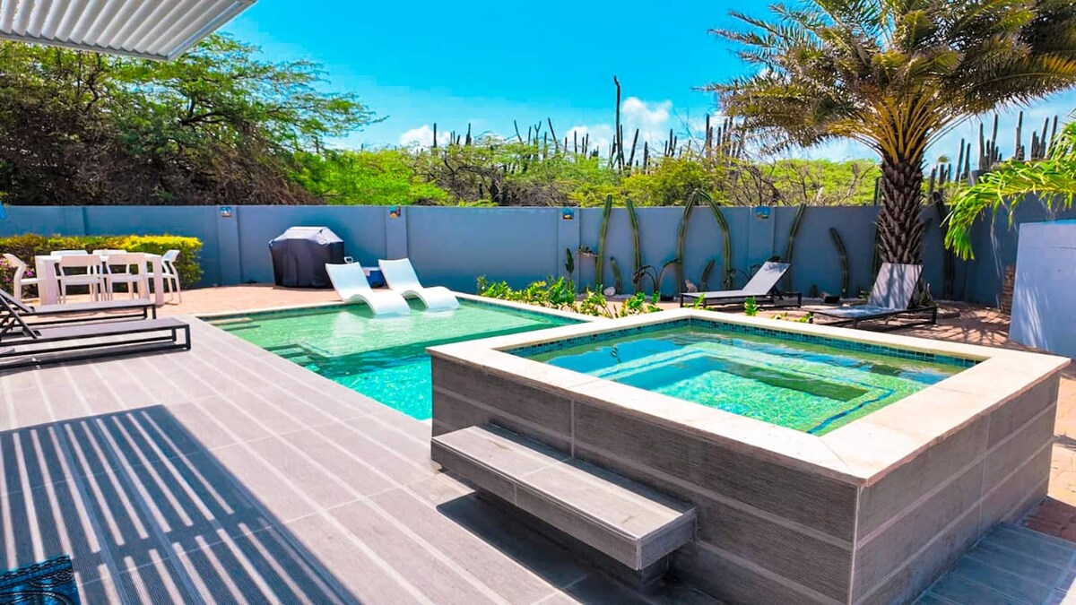 Disfruta de Aruba desde la comodidad de esta moderna y cómoda casa a 5 minutos a pie de algunas de las mejores playas del mundo. La casa está en un barrio muy tranquilo con un patio trasero PRIVADO. Disfruta de tu propia piscina azul cielo, barbacoa, bar tiki y zonas de estar. Una excelente opción para familias que quieran vivir como los lugareños de la isla y disfrutar de restaurantes, discotecas, centros vacacionales, centros comerciales y playas cercanas.