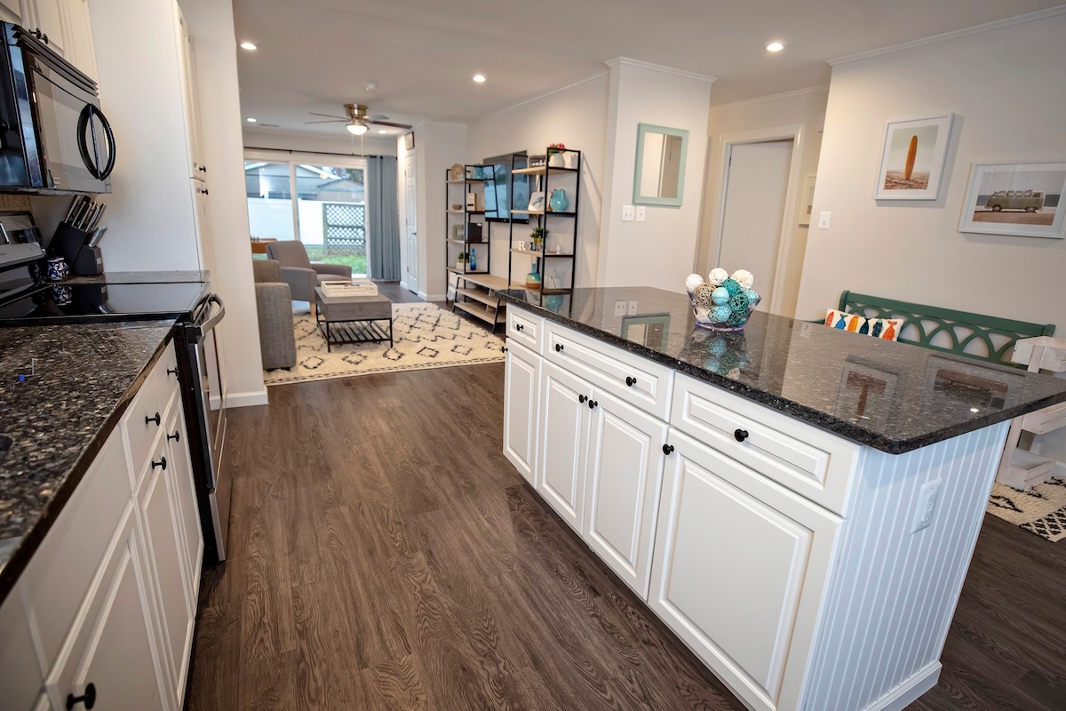 ¡Calendario abierto para reservas en abril de 2025! Bienvenido al Club Carp North Beach. Una casa de campo encantadora y acogedora a solo 3 manzanas del paseo marítimo/playa. Renovada por completo con 3 dormitorios y 2 baños completos. ¡Lugar perfecto para unas relajantes vacaciones en familia! Esta casa apta para niños tiene un gran patio lateral vallado con columpios, zona de juegos para los niños y muchas comodidades adicionales pensando en las familias. Cómodo comedor al aire libre con chimenea y parrilla de gas. A pocos pasos de restaurantes, tiendas y bares.