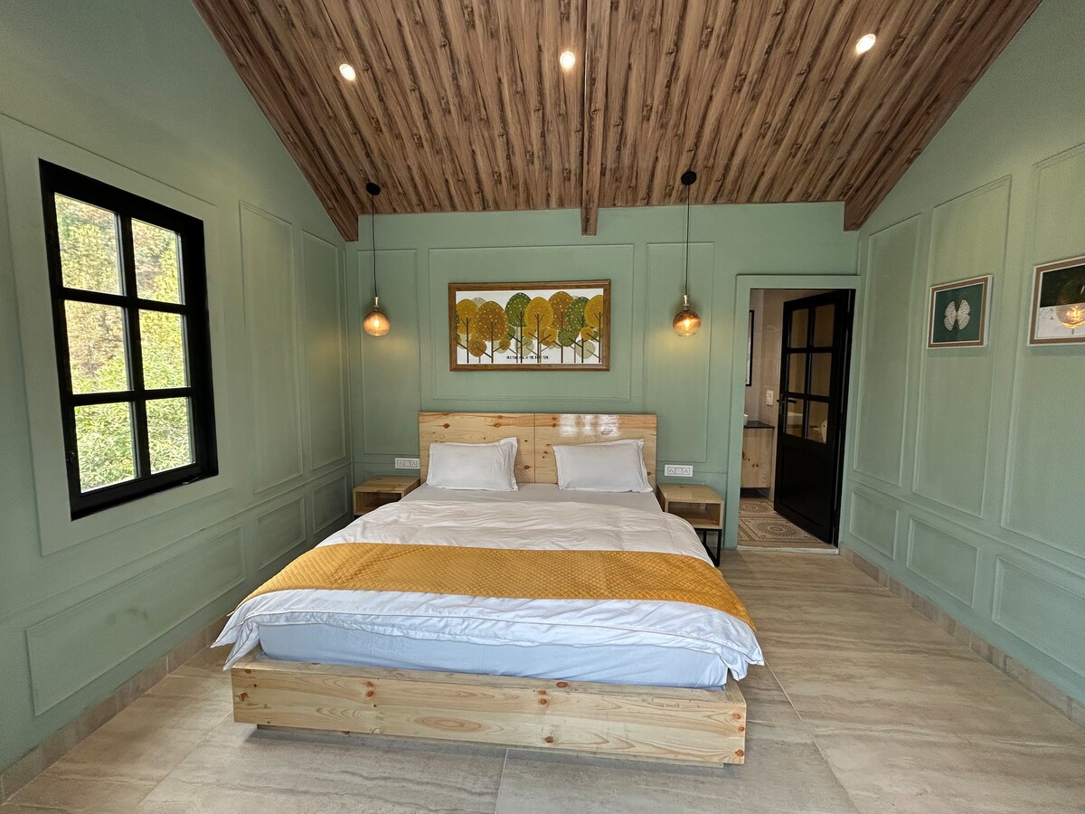 La intimidad de una casa de campo, amaneceres en el balcón, rincones tranquilos. Hecho para parejas que aman las mañanas tranquilas. Listo para trabajar, listo para la alimentación, teléfono opcional. Raya se siente acogedora y cercana. El balcón es el héroe aquí, el té y la primera luz todos los días. Interiores sencillos, madera cálida y una vista despejada marcan la pauta. El wifi es rápido, la energía está respaldada y hay un espacio de trabajo ordenado si lo necesitas. El tiempo de viaje desde Delhi es de nueve a diez horas. Kathgodam es la estación de tren más cercana. Aparcamiento gratuito. Ideal para parejas y aniversarios.