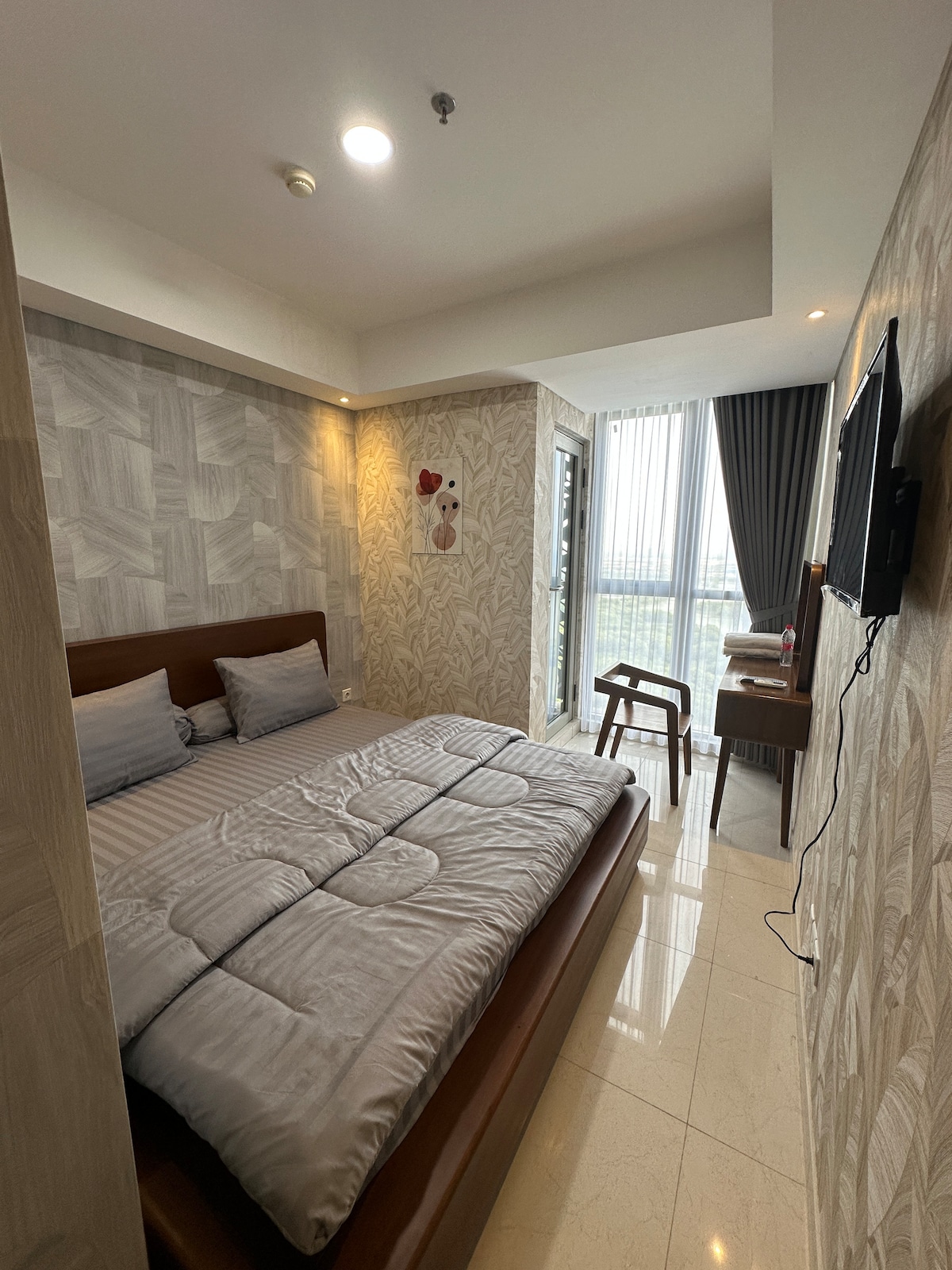 Cozy & Inviting Stay with city view in a Prime Location! Stay in this comfortable 2BR apartment on the 19th floor, ideal for couples, families, travelers, or business trips. Conveniently located next to Mall of Indonesia, where you can dine, shop, or enjoy a movie. • Common swimming pool for relaxation • Fully equipped kitchen for home cooking • Free Wi-Fi & TV cable for entertainment • Complimentary drinking water & essentials Enjoy a pleasant stay with great service at a fantastic value!