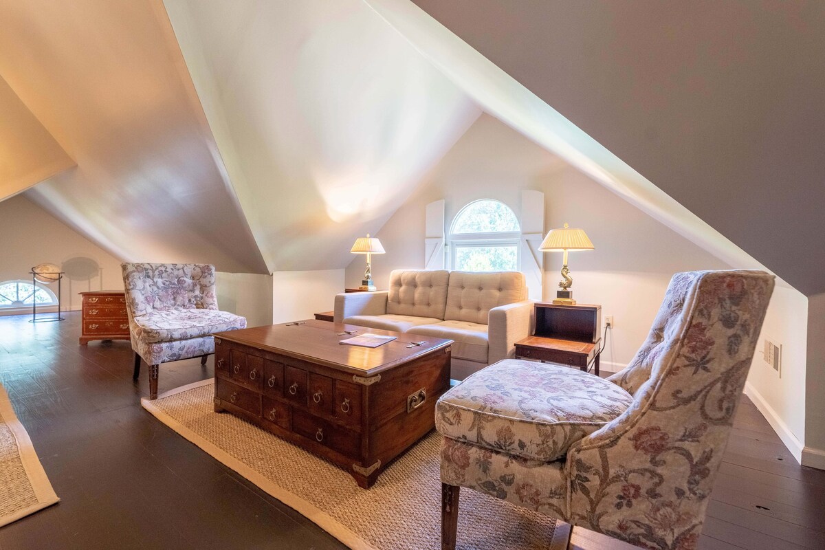 Nuestra romántica cabaña de jardinero es encantadora, acogedora y cómoda. Es nuestra casa de campo más pequeña, pero tiene un precio y está diseñada con todo lo necesario para una escapada relajante: balcón privado con vistas al jardín, lujosa cama tamaño queen, bañera de hidromasaje doble (ducha de mano), cocina bien equipada, entrada al jardín y registro de entrada/salida. ¡Estacionas a pocos pasos y tu mascota también es bienvenida! Camina 4 cuadras hasta South Main para disfrutar de restaurantes, tiendas y opciones de entretenimiento locales.