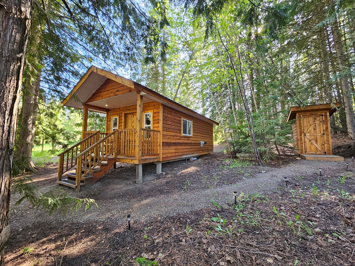 Desconecta y desconecta en una acogedora cabaña de cedro alimentada por energía solar entre los árboles. Esta cabaña de concepto abierto ofrece una zona de cocina, comedor, horno, cama tamaño queen, así como un futón, así como un futón para arreglos adicionales para dormir. La ducha separada, la letrina y el área de pícnic cubierta te proporcionan todas tus necesidades básicas mientras mantienes una sensación de acampada rústica. Chimenea de propano incluida (trae tu propia botella o alquila una de nosotros). Disfruta de todo lo que White Lake tiene para ofrecer a pocos minutos.