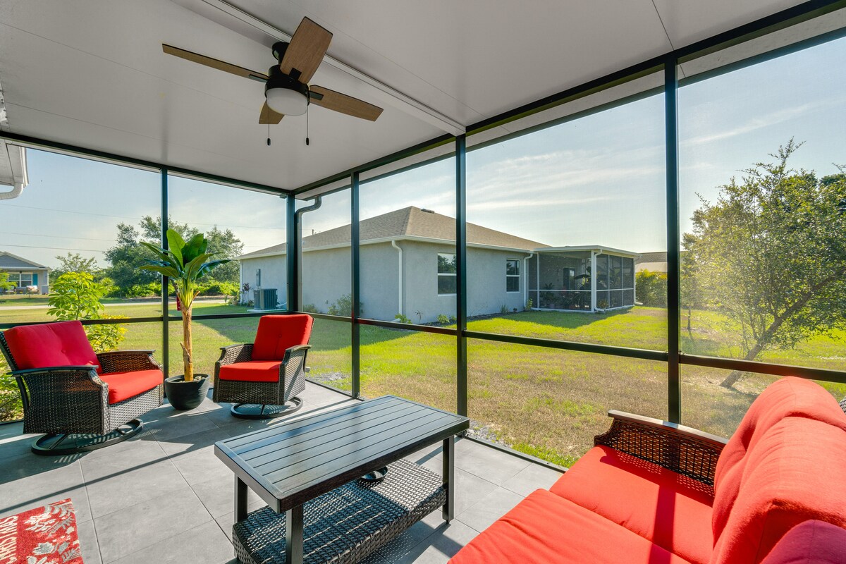 La vida costera fácil te espera en esta acogedora morada. Ubicado a 3 millas de Port Charlotte Beach Park, este alquiler vacacional de 2 dormitorios y 2 baños con energía solar ofrece una base de operaciones discreta para volver al final del día. Cuando no pases tiempo junto a la orilla, da un paseo para visitar el distrito histórico de Punta Gorda o disfruta de una tranquila tarde saliendo en Riverwood Golf Club. Por la noche, come algo en uno de los restaurantes cercanos antes de relajarte en el lanai. ¡Tu próxima escapada no está muy lejos!
