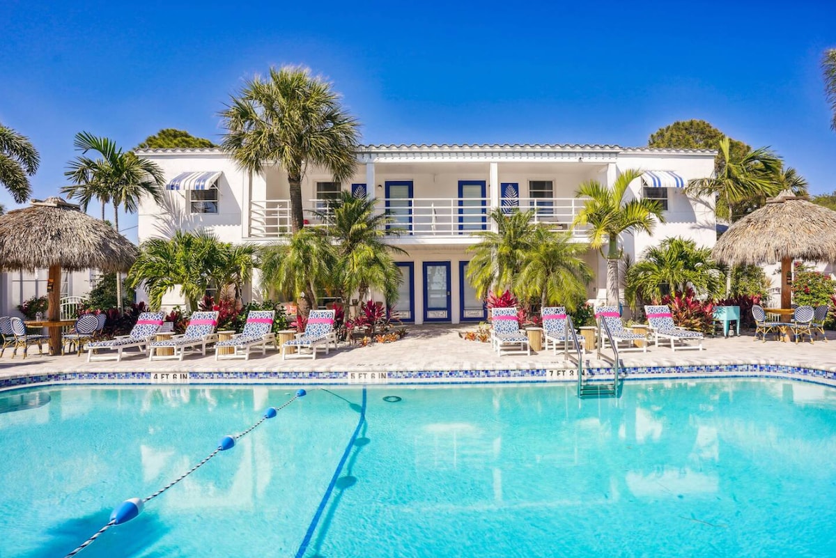 ¡Te damos la bienvenida a The Margarita Suite en Salt Water Suites! Este departamento privado, con una piscina resplandeciente y elegantes renovaciones, ofrece una mezcla perfecta de comodidad y encanto de Florida. Ubicada en North Redington Beach, a solo unos pasos del Golfo, esta joya oculta, construida originalmente en 1938, promete unas vacaciones memorables y relajantes. *Camina hasta la playa. *Piscina climatizada. *Cabañas y tumbonas * Juegos al aire libre * Cocina completa. *Limpio y bien cuidado *Hermoso espacio recientemente renovado