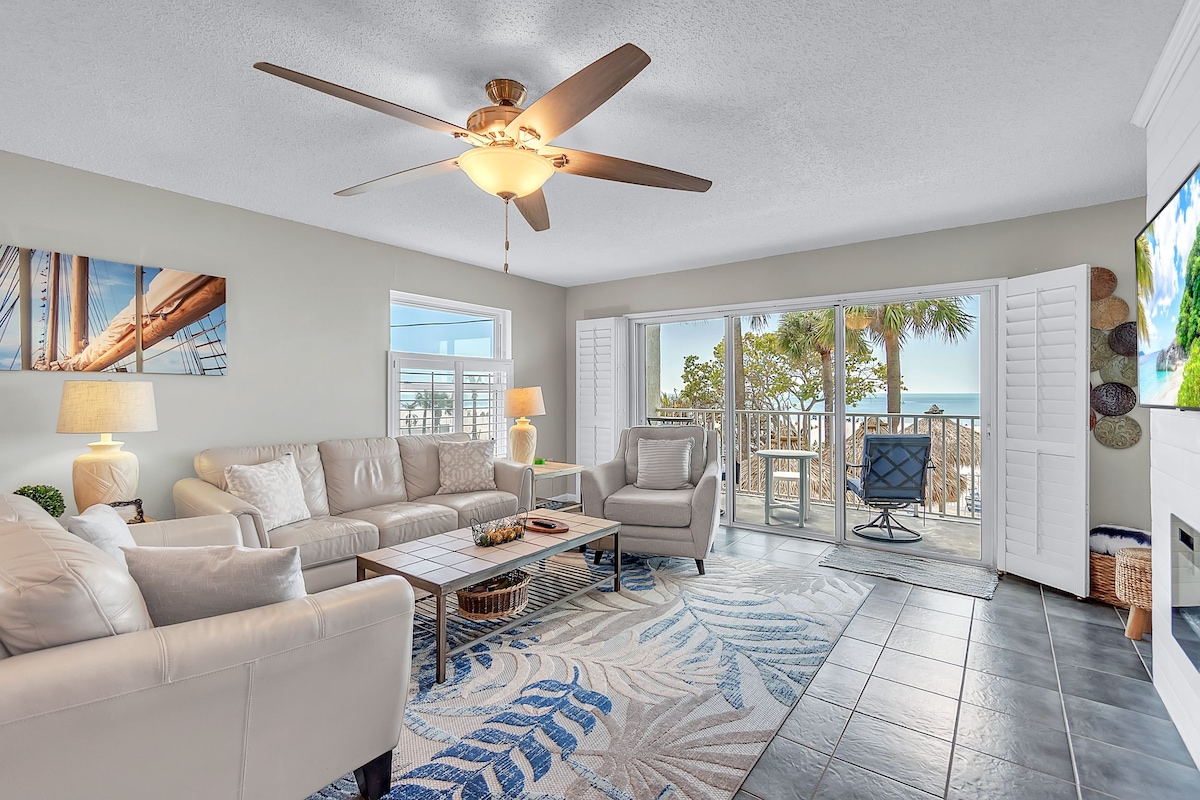 2026 is better than ever, all pictures are updated and we have purchased nearly all the same materials plus added new windows, doors and AC unit for the unit. Come back to North Redington Beach and enjoy the amazing views! Relaxing Beachfront getaway w/ the most beautiful sunsets! Property is steps from the sandy beach of the Gulf (Umbrella/Chairs/Cooler provided ). * Trolley-stop close by * Parking/Wi-Fi * Shuffleboard * Laundry on site