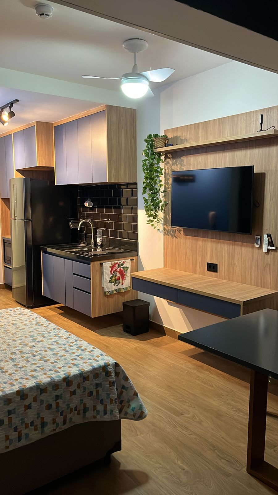 Alójate en este increíble, nuevo y completo estudio en Rua Apiacás, 104. Perfecto para el ocio o el trabajo. Disfruta de una cama tamaño queen, balcón, cocina equipada, Smart TV e internet rápido. El condominio ofrece un gimnasio, cine, espacio de coworking, lavandería, tienda de comestibles y espacio para mascotas. Ubicación estratégica, a pocos minutos de Allianz Park, Albert Einstein Hospital, Unimed y PUC-SP. ¡Comodidad y practicidad para estancias cortas o largas!