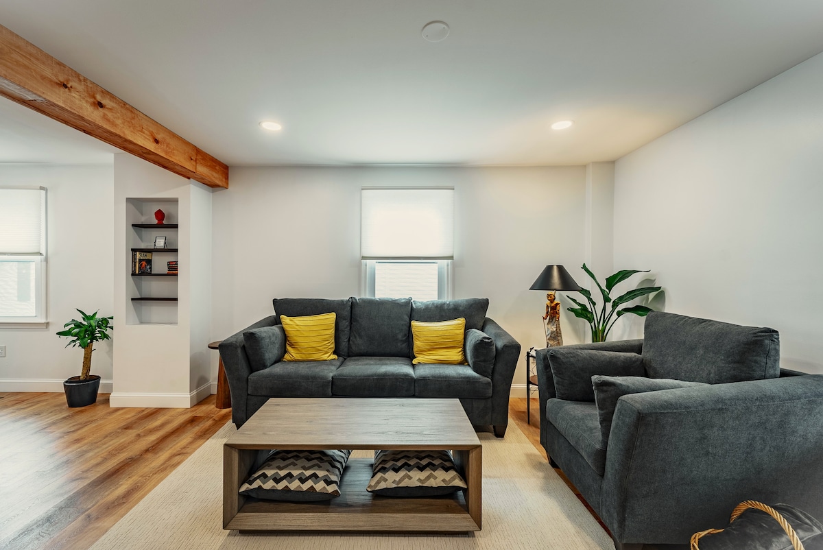 Nuestro apartamento recién remodelado en un barrio privado está cuidadosamente diseñado teniendo en cuenta tus necesidades, incluidas muchas comodidades. Disfruta de la cocina totalmente funcional, el espacioso baño, 2 dormitorios y una acogedora sala de estar con un gran televisor HD de 65 pulgadas e internet de alta velocidad. Situado a poca distancia a pie de restaurantes y bares del centro de la ciudad, tiendas locales, estación de Amtrak, Smith College y Northampton Fine Arts Center. Disfruta de tu experiencia en Northampton en un entorno privado pero lujoso.