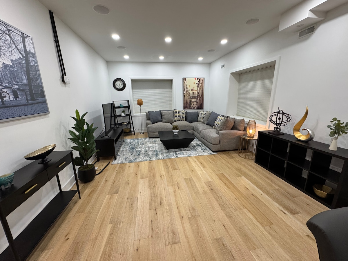 Un espacioso y moderno apartamento de 1 dormitorio con aire acondicionado central, WiFi, Roku TV, patio trasero privado en el histórico oasis urbano y la calle peatonal Maplewood Mall en Germantown. Café, tés, utensilios de cocina completa y baño. Muchos restaurantes pequeños y lugares para llevar dentro de una cuadra. Dos estacionamientos municipales gratuitos al otro lado de la calle. Estación de tren a Center City a 3 cuadras de distancia. El tren y el viaje a Filadelfia están a 20-25 minutos. ¡Llegada autónoma segura y sin contacto con caja de seguridad con caja de seguridad!