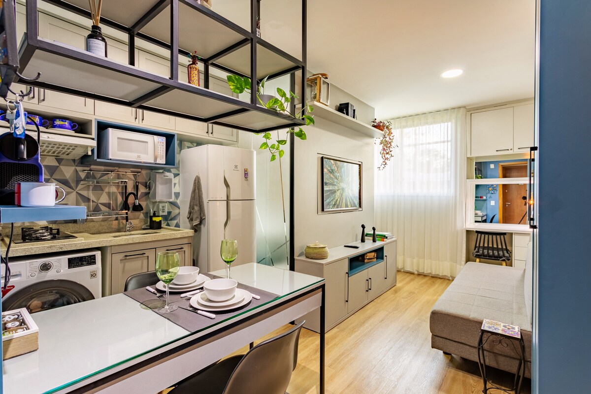 Apartamento moderno e aconchegante, em frente ao Bosque do Sudoeste. Confortável para até 4 pessoas, este espaço de conceito aberto oferece design sofisticado, ar-condicionado, cozinha completa e garagem coberta. Perfeito para quem busca tranquilidade e conveniência em uma das áreas mais charmosas de Brasília. Perto de mercados, academias , restaurantes e próximo ao Estádio Mané Garrincha e ao Centro de Convenções.