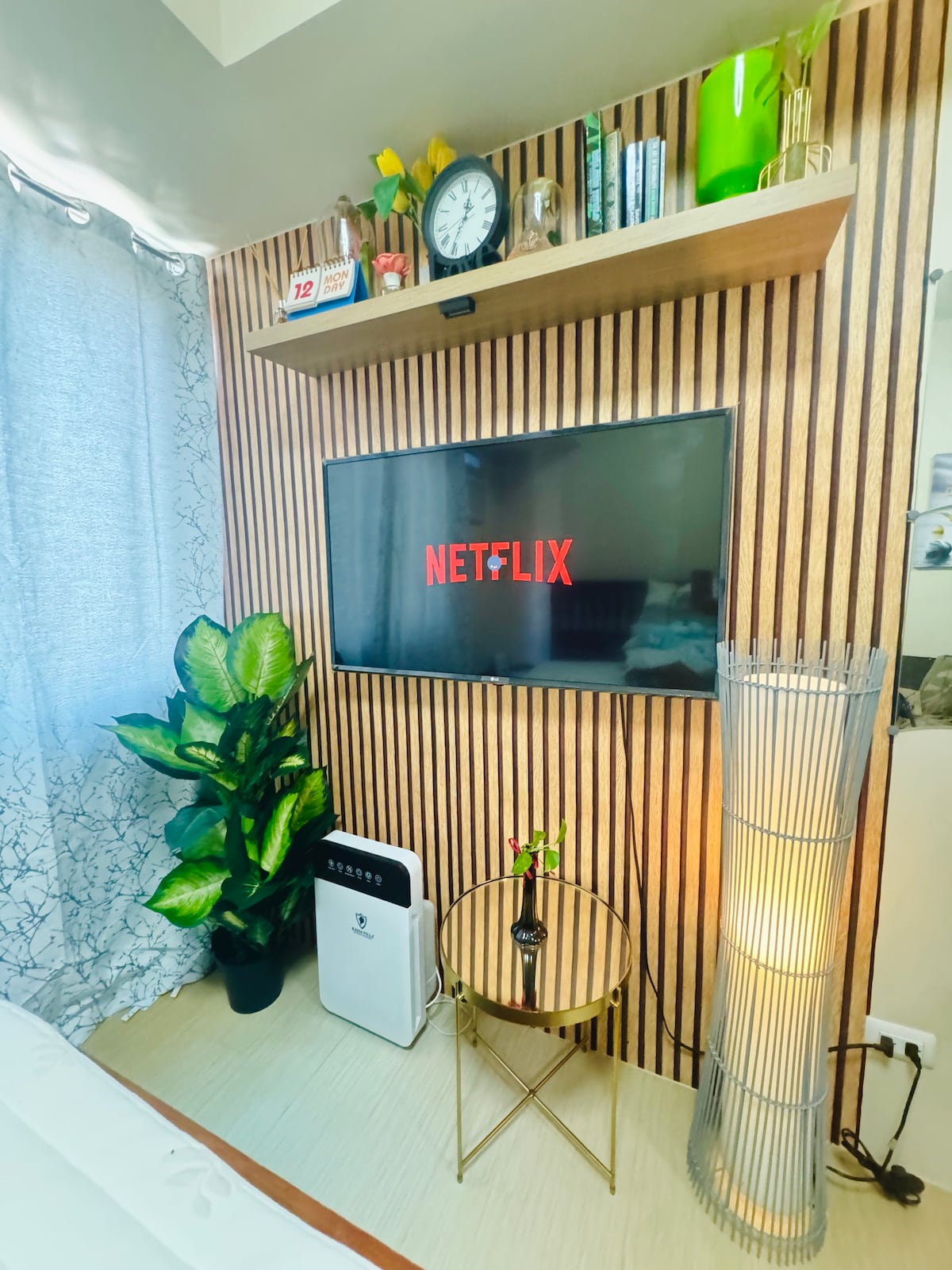 Disfruta de un elegante y acogedor apartamento de un dormitorio en Uptown Cagayan de Oro - Con TV de 50 pulgadas con Netflix y Youtube. - Baño reformado con bañera, ducha de efecto lluvia fría y caliente. - Apartamento totalmente climatizado (aire acondicionado tipo split de 1,5 hp en la sala de estar y de tipo ventana de 1 hp en el dormitorio). - con electrodomésticos y utensilios de cocina en funcionamiento (cocina eléctrica de 4 quemadores, microondas, hervidor eléctrico, ollas arrocera). - Con libros que puedes leer. - Juegos de mesa a los que puedes jugar. - Piscina cubierta situada en la misma planta.