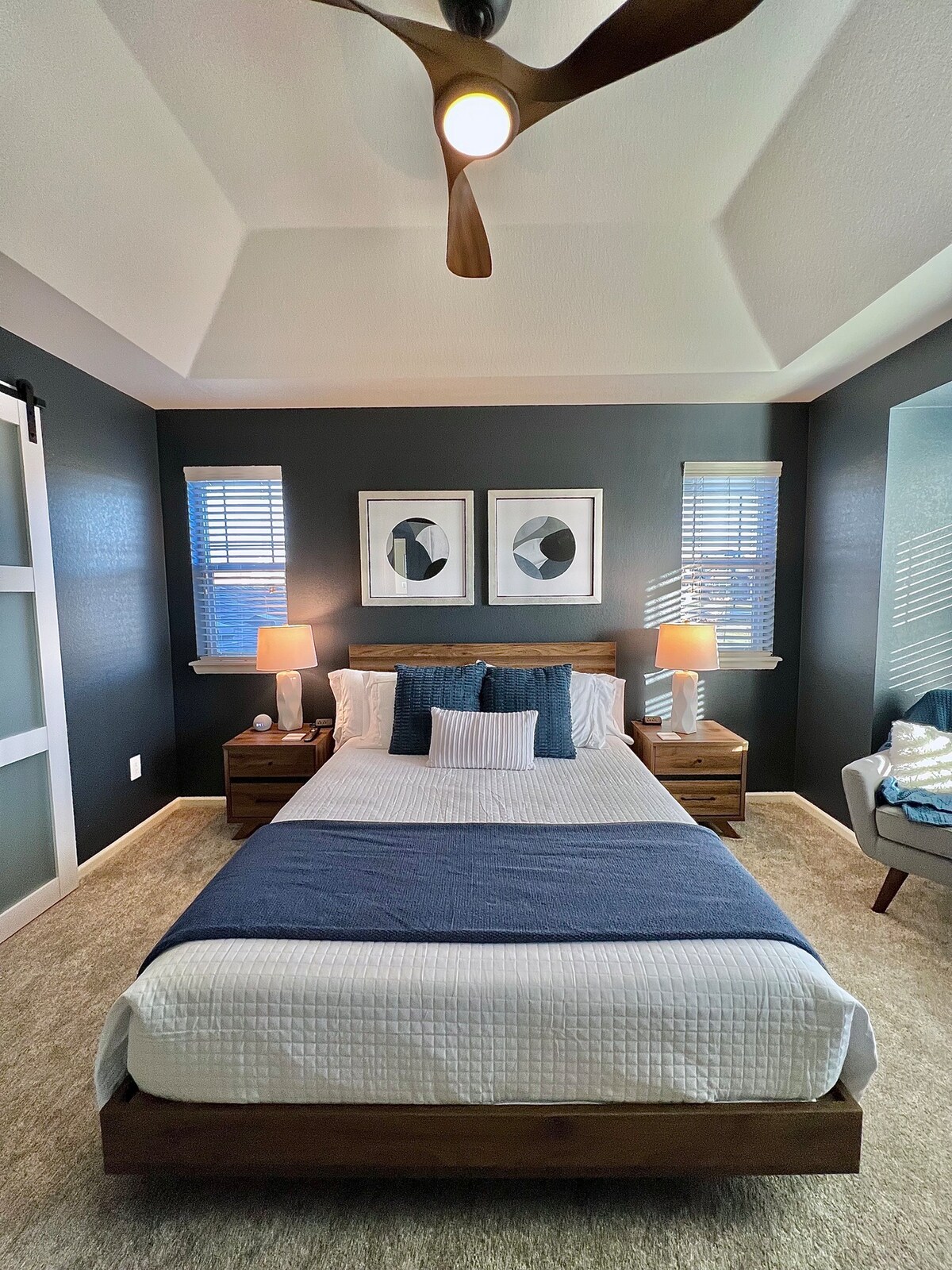 Welcome to this refined 1,400 sq. ft. luxury private suite with a private entrance, set in a serene neighborhood near parks, shopping, Topgolf, dining, and entertainment. Featuring a gourmet kitchen, elegant living room with an 88” Smart TV, a primary suite with walk-in closet and 75” TV, a stylish guest room with queen bed and 52” TV, plus a private laundry room with full amenities—this residence offers comfort, sophistication, and convenience.
