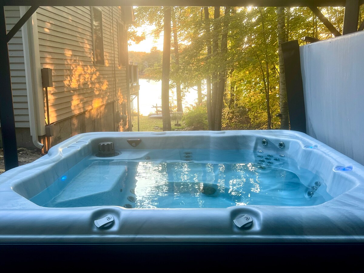 This modern lakehouse is situated on Hogan Pond in Oxford Maine. Here you can stay with all the comforts of a beautiful lakehouse built in 2020 while being feet from the water. This is a great place to vacation whether you prefer the private sandy beach, the A/C inside complete with Smart TV cable and Wifi, or the hottub! Sip a drink at the bar while watching the game or use the grill on the deck but be sure to use the built in sound system to play your music throughout the house and deck.