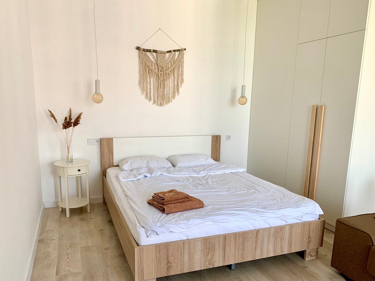 «Riviera Sea Apartments» es un elegante apartamento de 44 m² en la planta baja, a solo unos minutos del mar Negro y del centro comercial Riviera. Equipado con todo lo necesario: una cocina con fogones de gas, microondas, nevera, cafetera, hervidor de agua, lavavajillas; un dormitorio con cama de matrimonio y sofá, aire acondicionado, TV; un amplio vestidor, una bañera con ducha y una lavadora. Playas cercanas, restaurantes, piscinas e infraestructuras prácticas: todo para unas vacaciones cómodas e inolvidables.