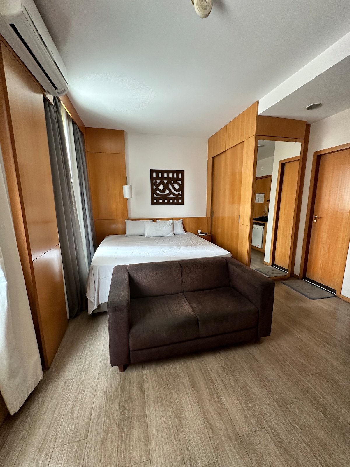 Flat Clássico: vaga, ar-condicionado, piscina.