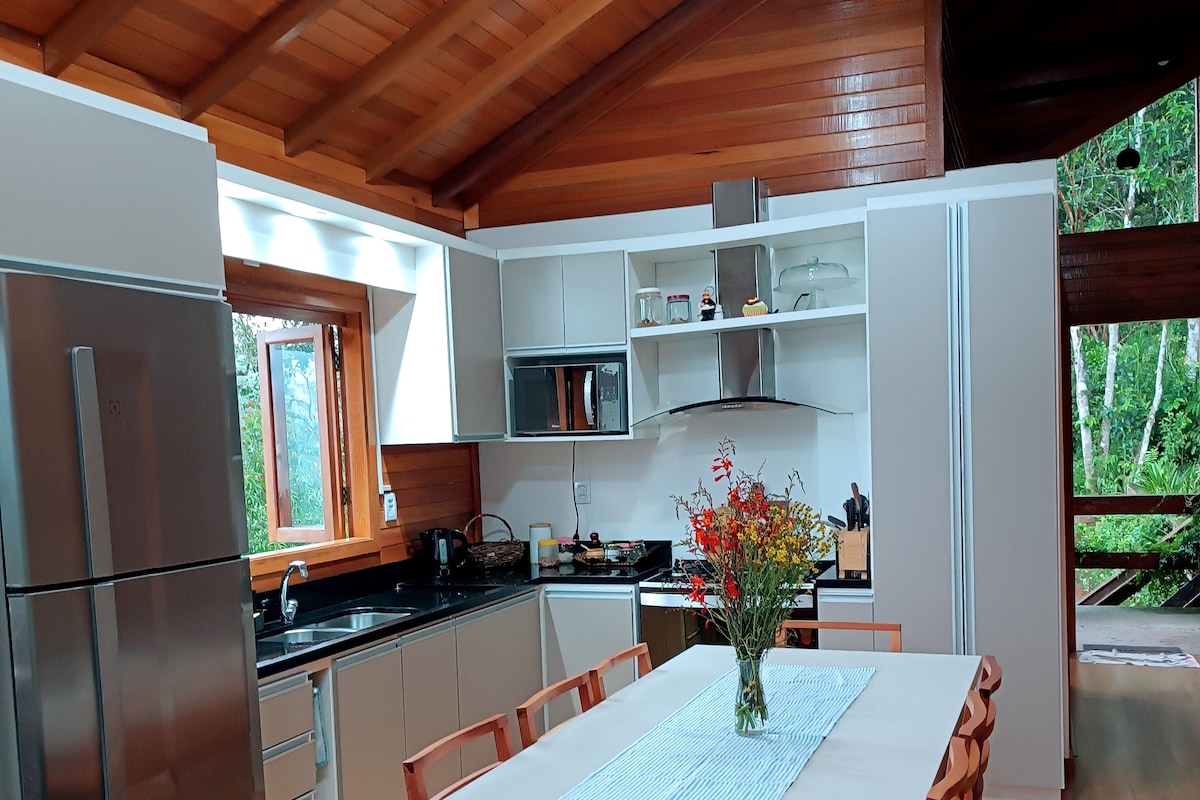 Bienvenido a Nova Petrópolis, esta encantadora ciudad de Serra Gaúcha. Aquí, en este espacio, encontrarás paz y tranquilidad, en un barrio tranquilo y cerca del centro de la ciudad. Podrá comer en el lugar, ya que la cocina está completa. El apartamento cuenta con ducha de gas y aire acondicionado en las habitaciones. En el balcón podrás descansar en la hamaca y disfrutar de un delicioso mate, además de una estufa a leña en la cocina, para que puedas calentarte en los días fríos de la Serra Gaucha