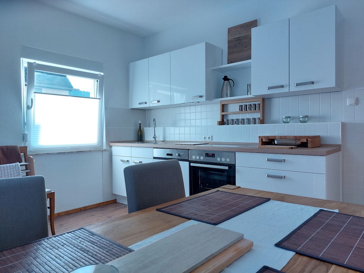Nuestra segunda casa, a 5 km de nuestros nietos. Toda la casa para ti. Todo renovado y reformado. Desde 2020/21 también con: nuevo televisor de 85 pulgadas, una gran barra de sonido, nueva chimenea y una estación de carga de vehículos eléctricos de 11 kW/h. Vacaciones en el Vulkaneifel: a 12 minutos en coche de la A1, sin «tráfico» y muy tranquilo. A 10 minutos de Gerolstein y, sin embargo, tan céntrico que hay muchas oportunidades para hacer senderismo. Y estás a 45 minutos de Koblenz o a 30 minutos del valle del Mosela.
