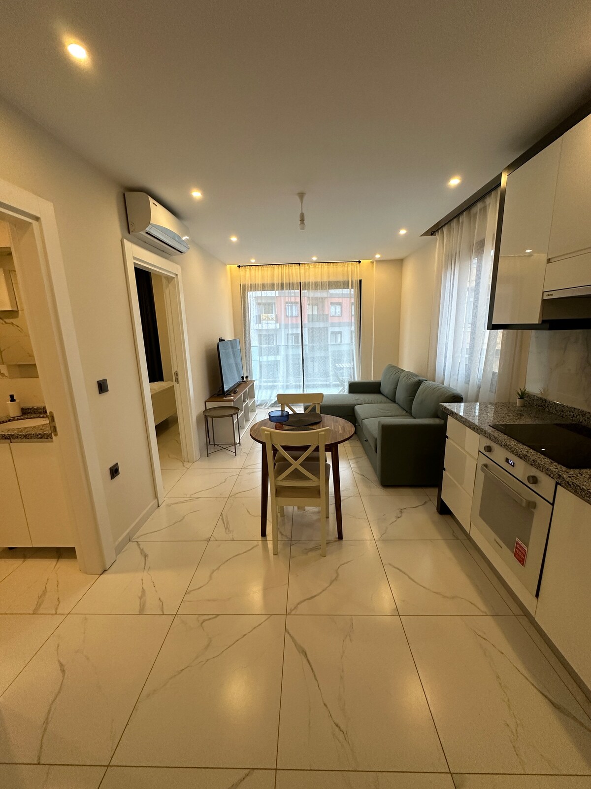 Helt ny lägenhet 1+1 i nybyggd komplex Harmony 2 Residence med infrastruktur swimmingpool, gym, grillplats, sauna, turkiskt bad., videoövervakning. Huset är byggd år 2024 och ligger bara 100 meter från havet. Butiker, restauranger, köpcentret, market, är bara en kort promenad bort.