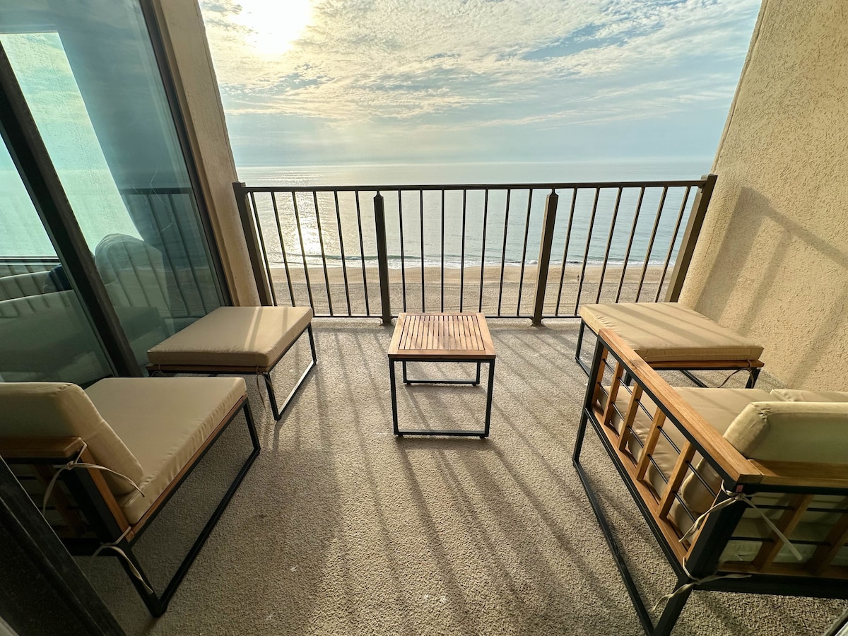Beautifully renovated oceanfront condo with panoramic ocean views and direct beach access. Building indoor pool and hot tub are closed for a full HOA renovation and upgrade, scheduled to reopen in May 2026 and be refreshed and like new for the 2026 season. By booking, you acknowledge the pool and hot tub may be unavailable during your stay and agree no discounts or compensation will be provided for this closure unless confirmed in writing in advance of your reservation and booking.