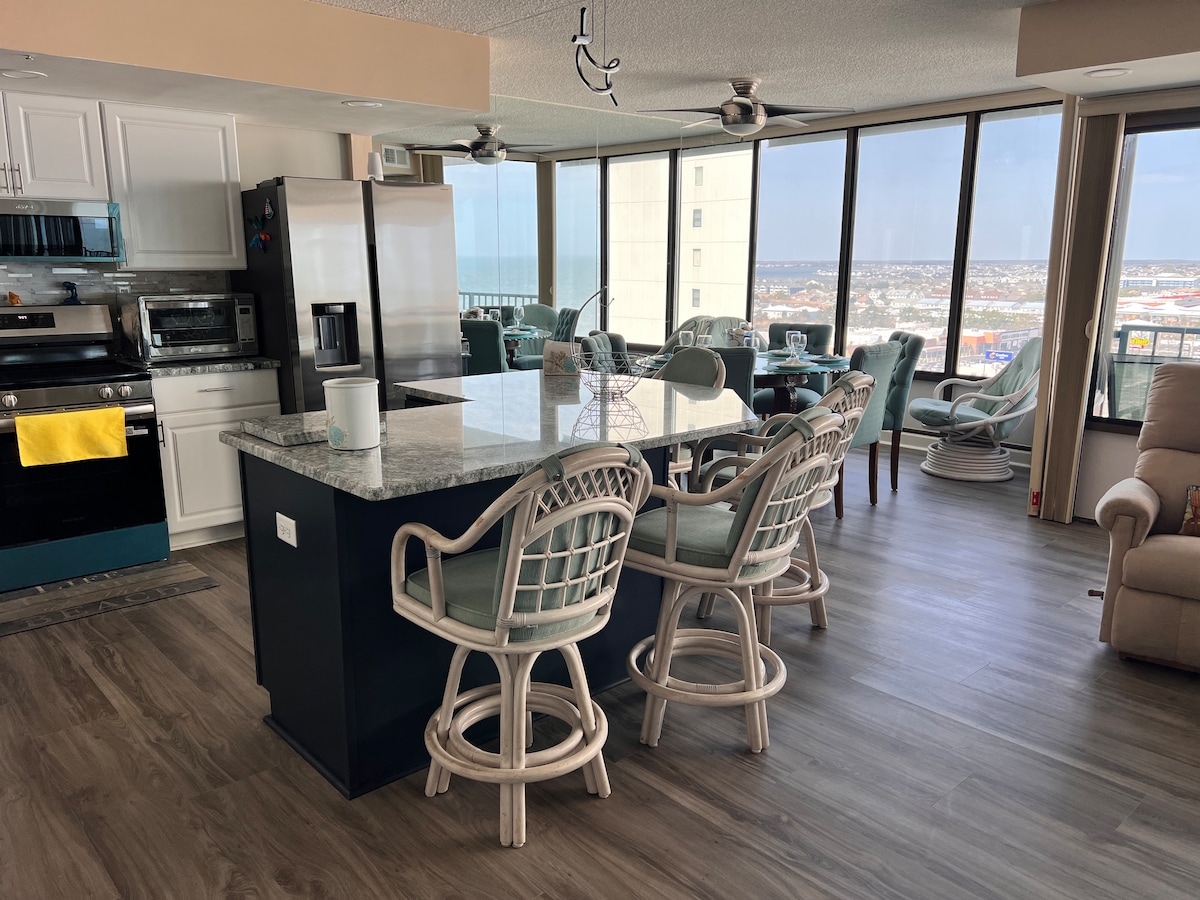 Hermoso y espacioso apartamento ático de 3 dormitorios y 2,5 baños que lo ofrece todo. Techos altos, planta abierta, espectaculares vistas al mar y preciosos amaneceres y puestas de sol. Piscina en la azotea, acceso completo a la cocina con una gran barra y electrodomésticos nuevos. A pocos pasos de la playa. Disfruta de la excelente comida de uno de los muchos restaurantes que Ocean City tiene para ofrecer. Ideal para unas vacaciones en familia. Muchas actividades para elegir, incluyendo clubes, paseo marítimo, parque acuático, minigolf, parque de atracciones, pista de patinaje sobre hielo cubierta y tiendas.