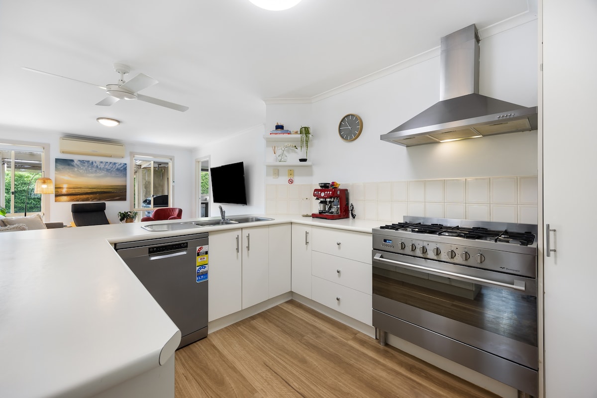 Situado en Hitchcock Avenue, en el corazón de Barwon Heads, Now&Then es ideal para parejas o familias pequeñas. A pocos pasos de la avenida Hitchcock llegarás al corazón del pueblo con restaurantes, cafeterías y boutiques. El río y la playa también están a la vuelta de la esquina, a un paso de distancia. Aunque está situado en la calle principal, está lo suficientemente lejos del recinto comercial como para proporcionar la relajación que tus vacaciones requieren.
